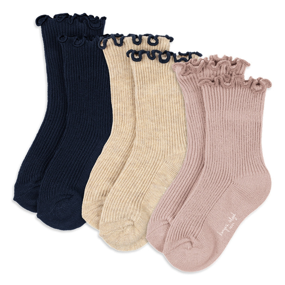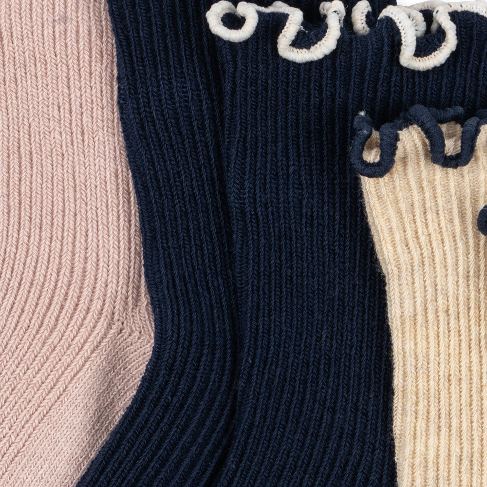 Konges Slojd tüdrukute sokid volangidega mereväe sinine/kreem/roosa 3 pakend