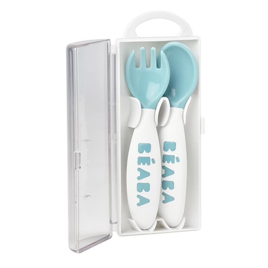 Prantsuse brändi Beaba sinises karbis olevad beebinõud on kujundatud nii, et need oleksid kergesti käes hoidvad isegi väikestele lastele.
