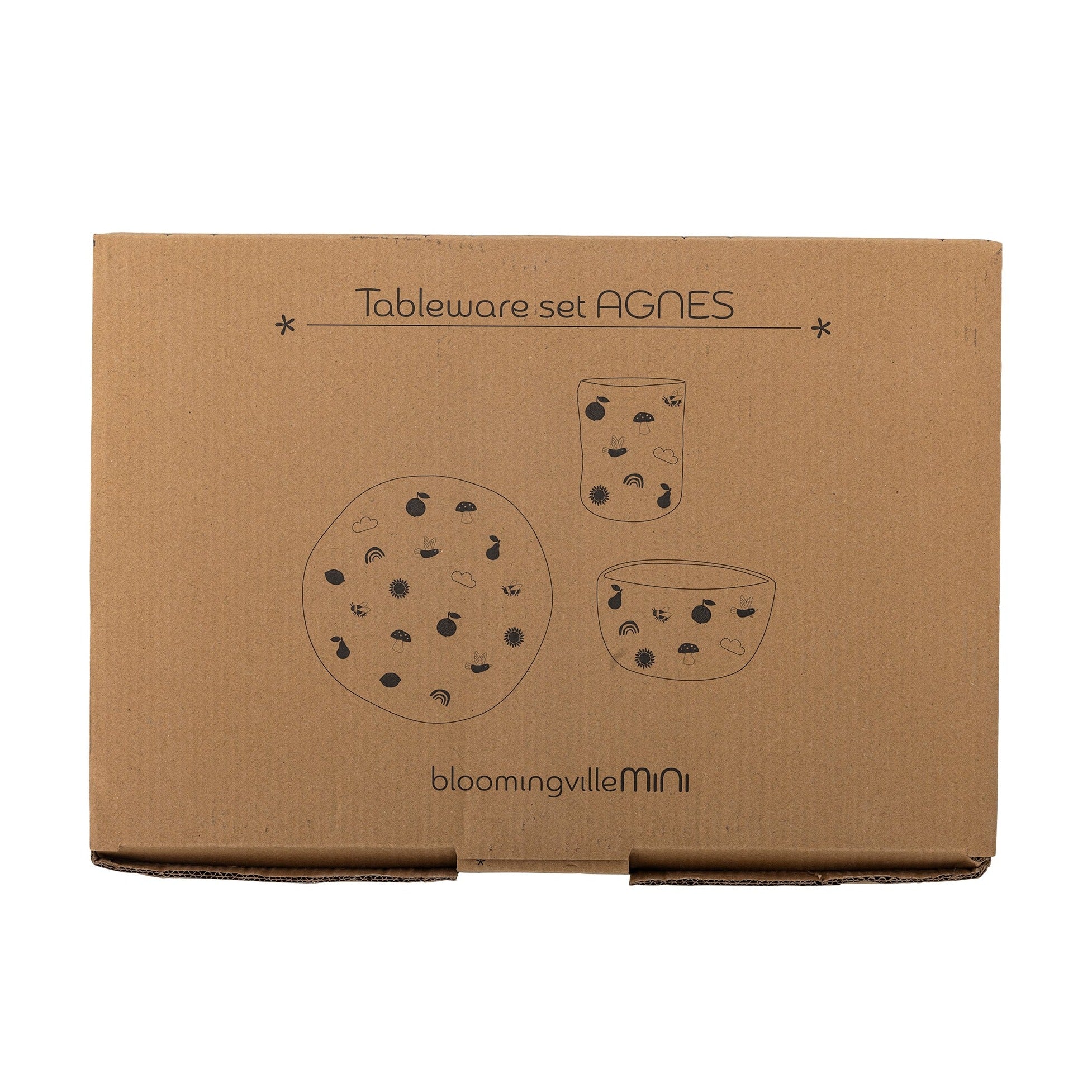 Bloomingville Mini Agnes laste sööginõude komplekt sisaldab taldrikut, kaussi ja kruusi, mis on kõik disainitud laste vajadusi silmas pidades.
