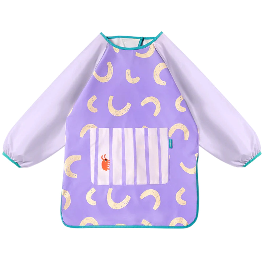 Intensiivse lilla värvi mudelil on pikad varrukad elastse mansetiga, mis hoiavad tõhusalt ära värvi, vee või toidu sattumise.