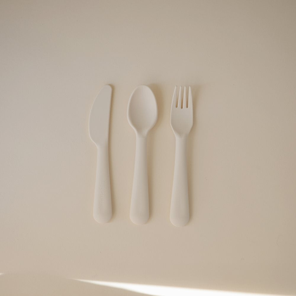 Mushie brändi 3-osaline laste söögiriistade komplekt värvitoonis Ivory.