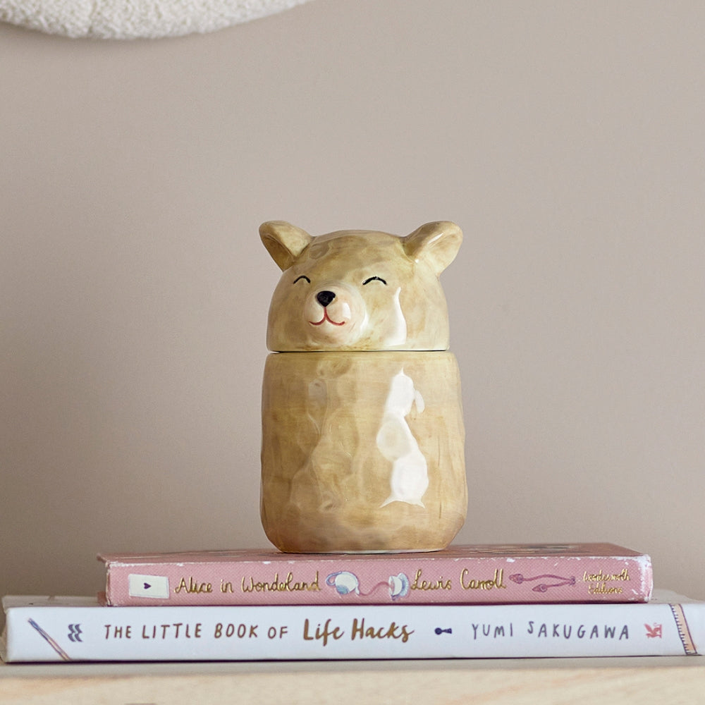 Bloomingville MINI Puk Jar halli kaanega on ilus aksessuaar, mis soojendab lapse tuba ja aitab väikeseid asju korrastada.