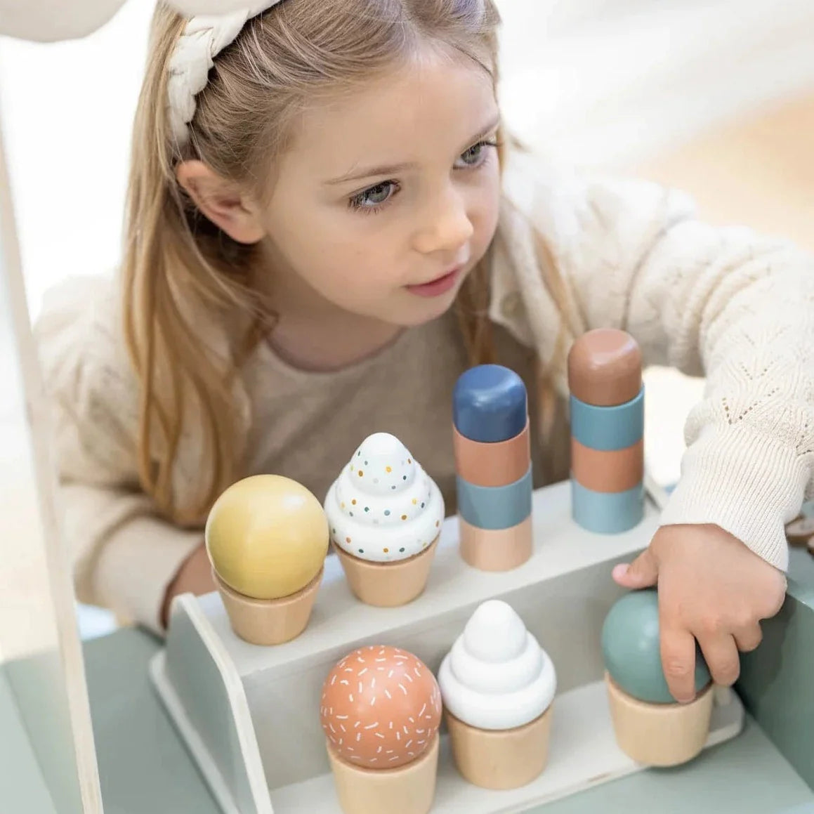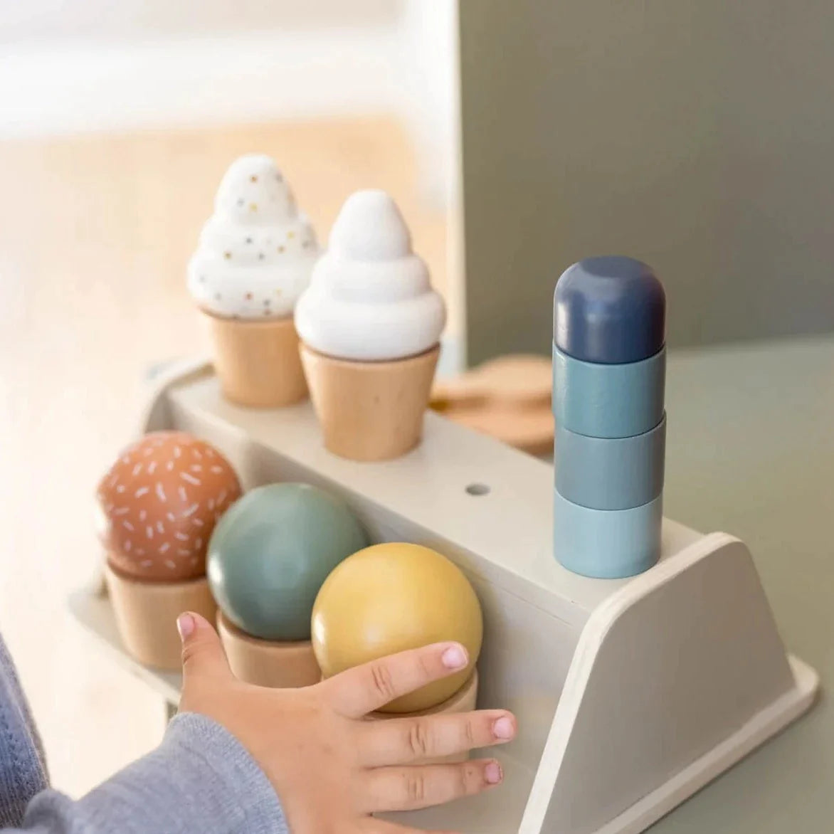 Flexa jäätisemasin lastele, puidust jäätisesett lusikatega