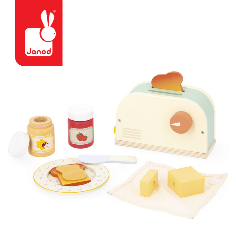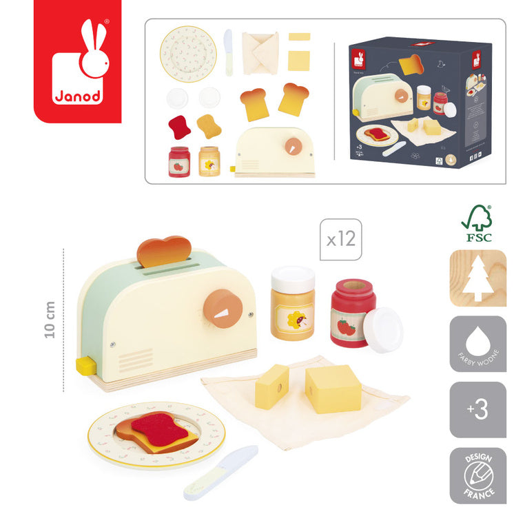 Janod Puidust hommikusöögi komplekt koos rösteri ja 12 lisandiga Shiny Grandma