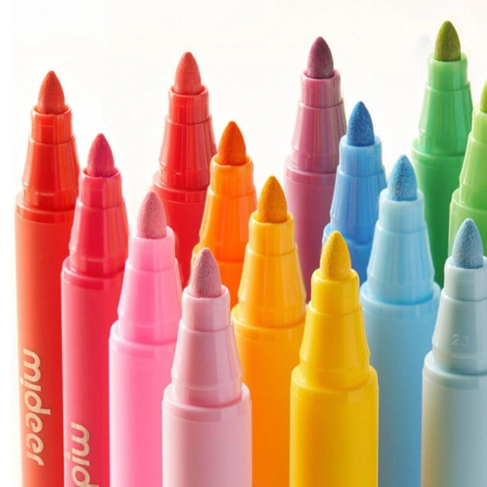 Mideer akrüülmarkerid ümmarguse otsaga, 12 värvi