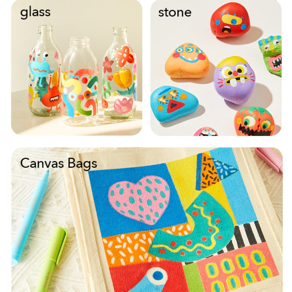 Mideeri akrüülmarkerid sobivad suurepäraselt mitte ainult lihavõttemunade kaunistamiseks. Tänu rikkalikule värvipalettile saab neid kasutada ka muudel pindadel, nagu klaas, puit või papp.