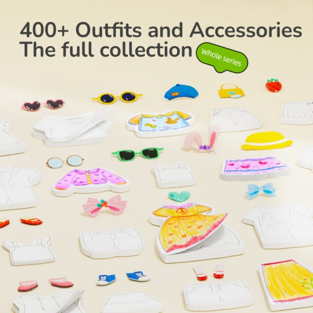 Komplekt võimaldab kujundada riietust post-it-märkmeid kasutades, nii et iga laps saab mängida moeloojat ja kujundada Pariisi moelavadel esitatavaid loomingut.
