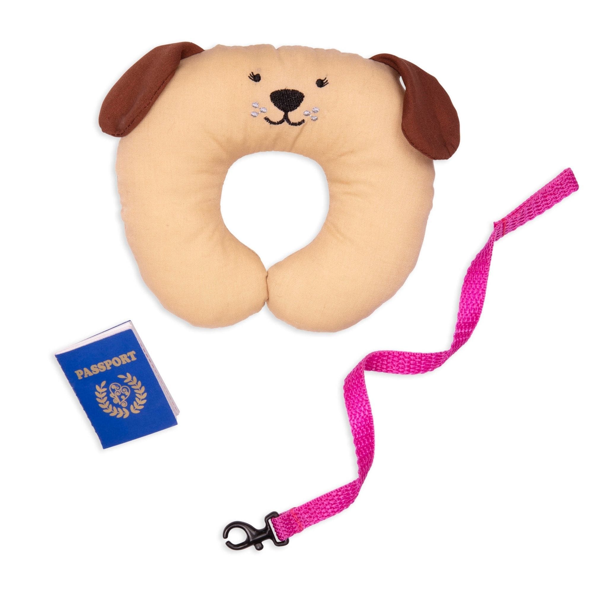 Komplekt sisaldab väikest kutsikat rihma otsas ja riideid, millega laps saab nukku ise riietada.