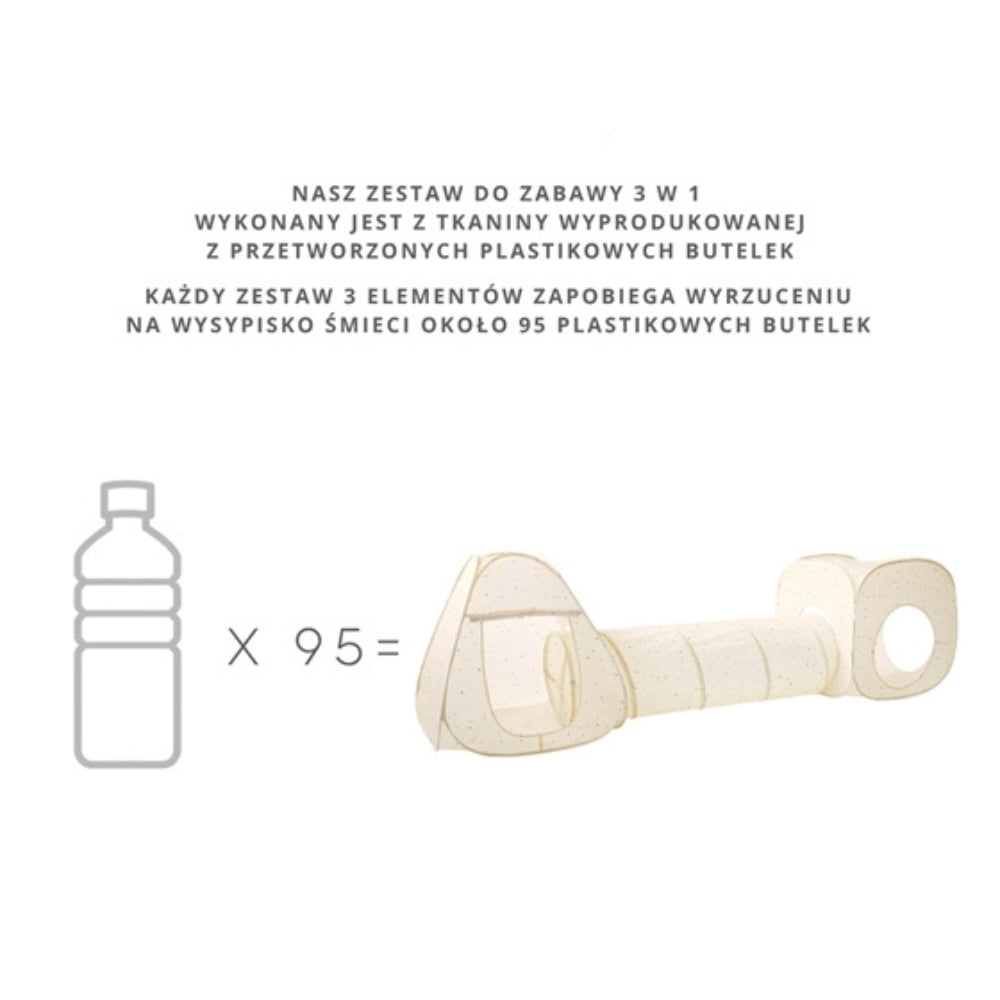 3 Sprouts laste telk tunneliga on valmistatud täielikult ringlussevõetud polüestrist – keskkonnasõbralik valik, mis meeldib teadlikele vanematele.