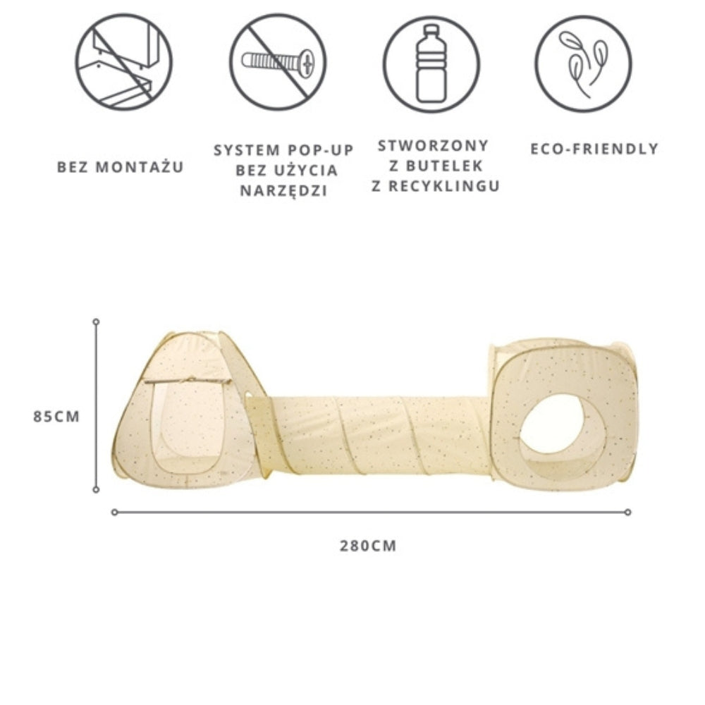 See ainulaadne laste telk tunneliga ei soodusta mitte ainult loovat mängimist, vaid lisab tänu trendikale Terrazzo Beige mustrile ka stiilse elemendi laste tuppa.