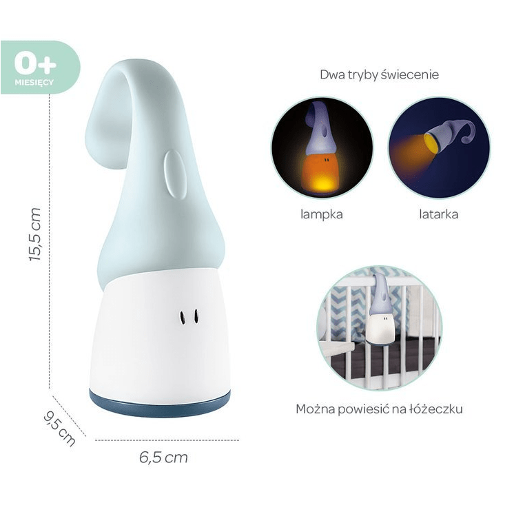 2-in-1 beebi öölampi saab kasutada ka taskulampina, mis valgustab tugevamalt altpoolt.