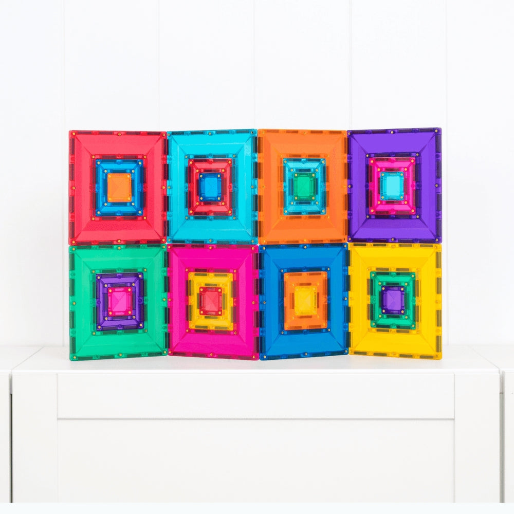 Connetixi Torch-Projector Portal Pack on magnetklotsid kaheksas erksas värvis ja kolmes suuruses, mis sobivad nutikalt üksteise sisse.