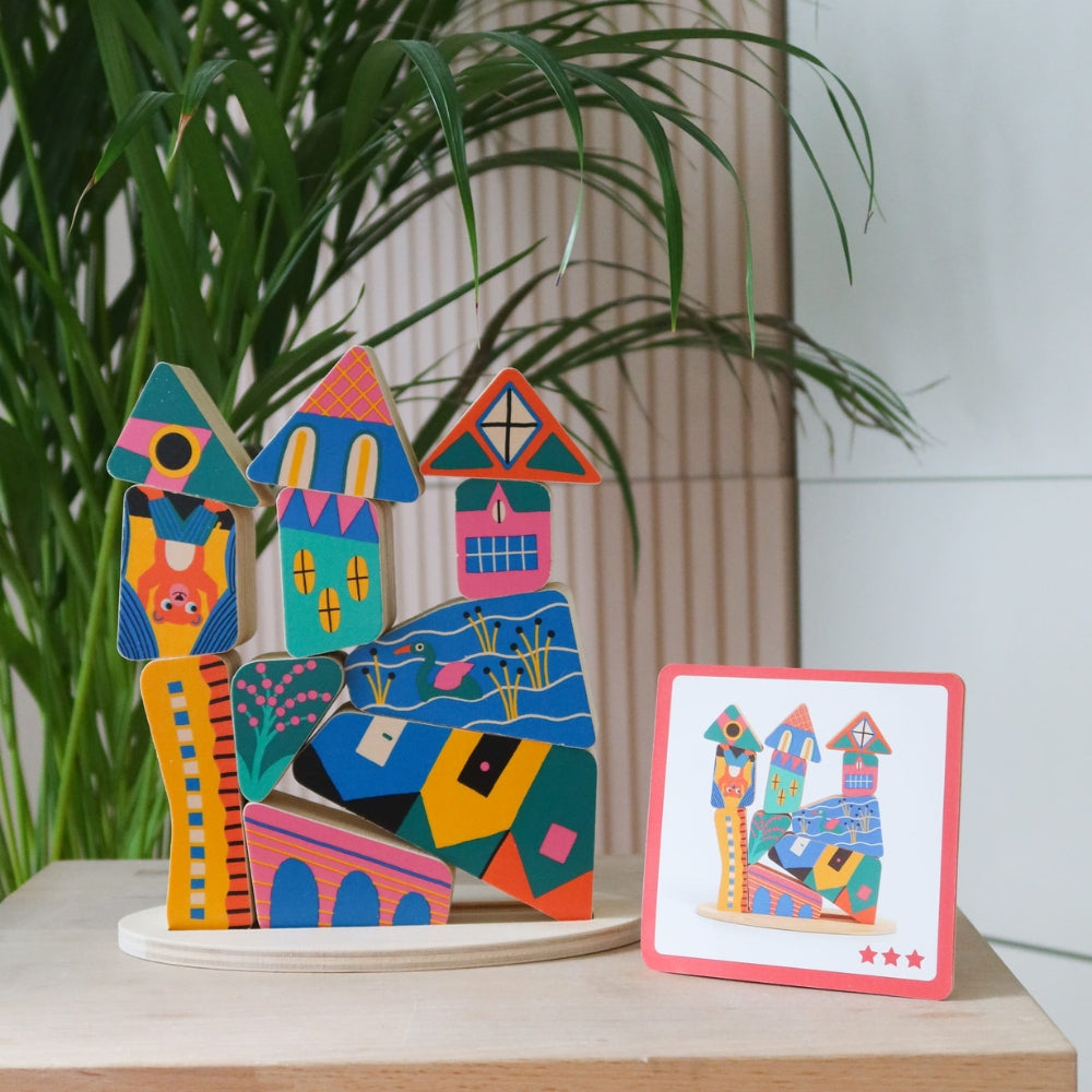 See värvikas, kumer maja on ebatavaline puidust ehitusmäng, mis arendab laste arusaama tasakaalu kontseptsioonist.