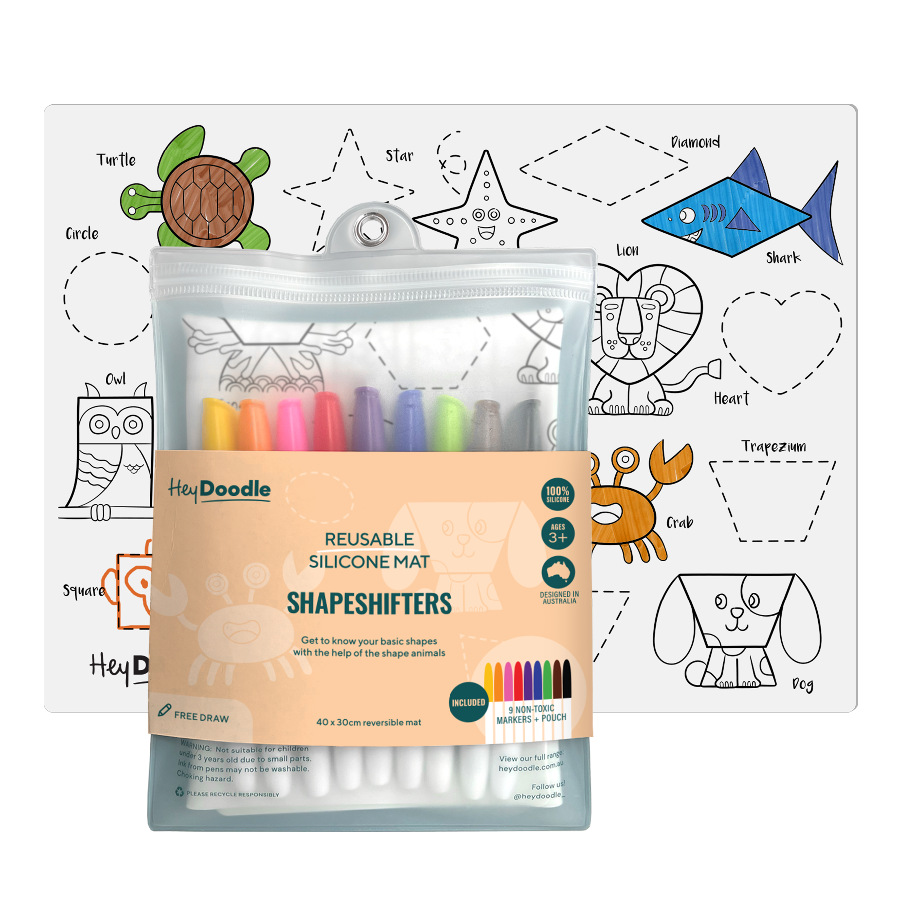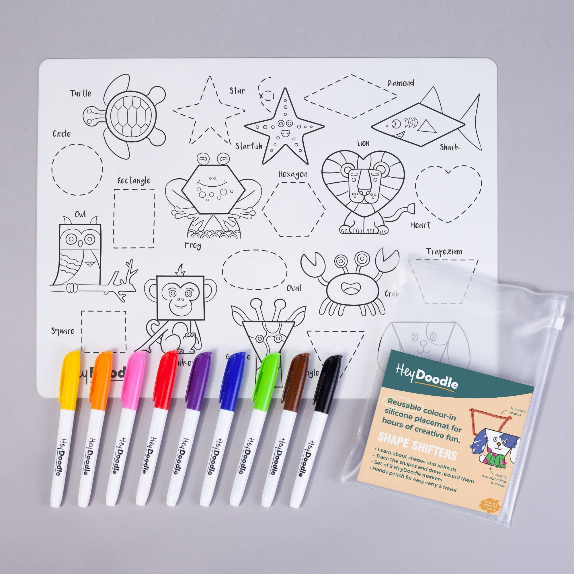 HeyDoodle'i suur silikoonist värvimismatt kujundite ja loomadega on ideaalne viis lõputu loomingulise lõbu jaoks.