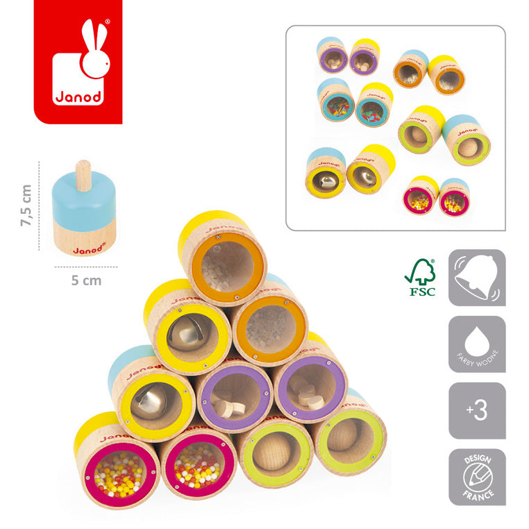 - Komplekt sisaldab: 6 paari puidust helistajaid, millest igaüks tekitab erinevat heli.