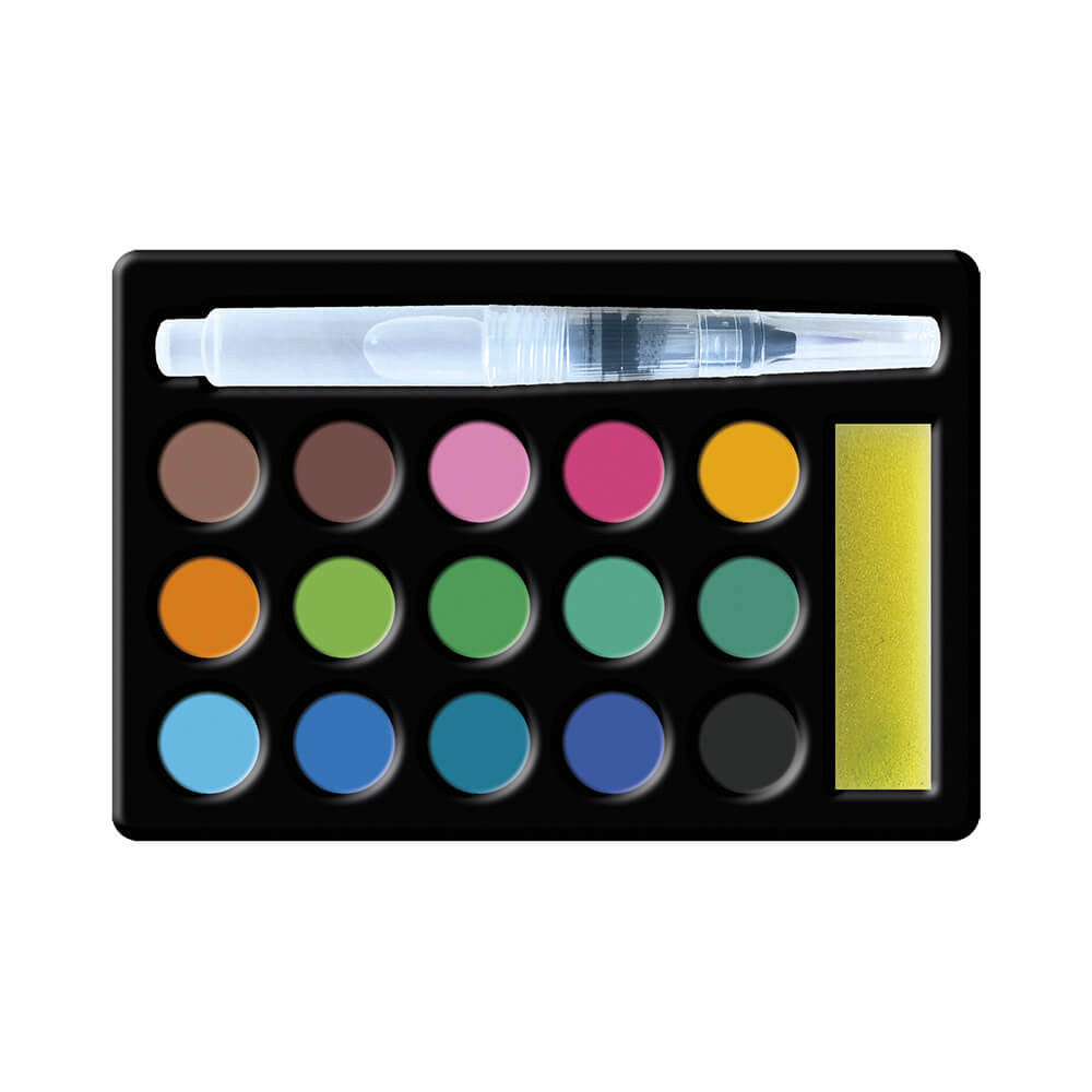 Komplekt sisaldab: 2 tahvlit-pilti, 15 värvi akvarellpalett, väike käsn, pildiraam