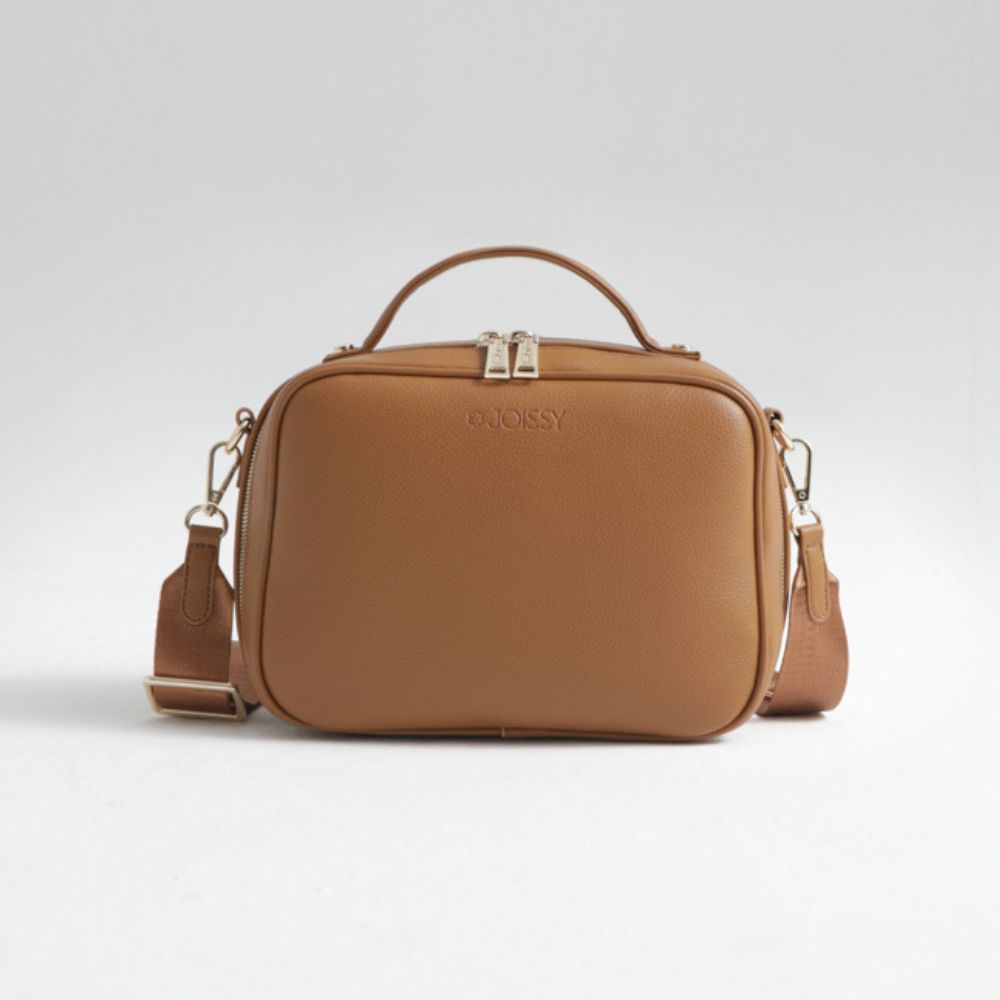 JOISSY VERA Caramel 2-in-1 emade kott ja lapsevankri korraldaja on kokkupakkimiseks sobiv ja kerge.