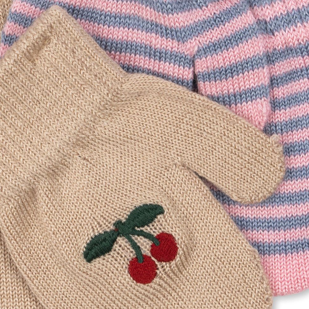 Konges Slojd laste kindad kirsside triibuga, 2 pakendit