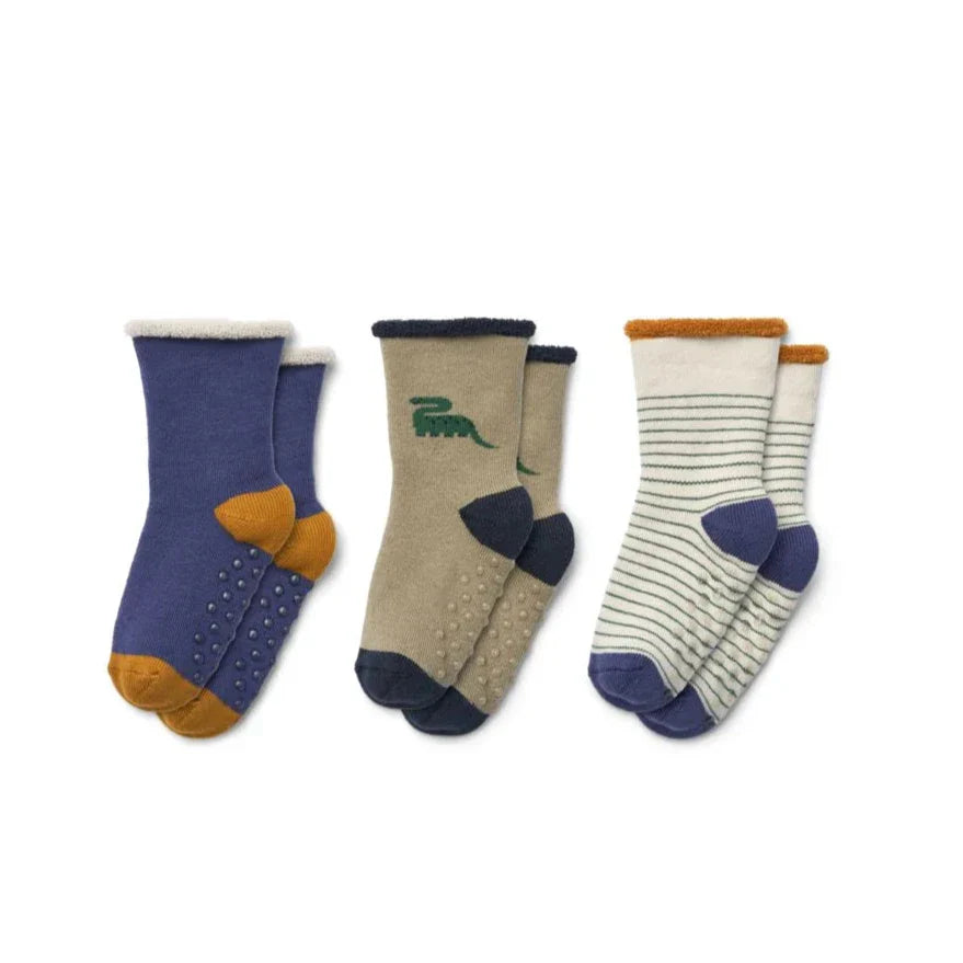 Liewood Eloy beebisokid, 3-pakend, Dino / Mist mix