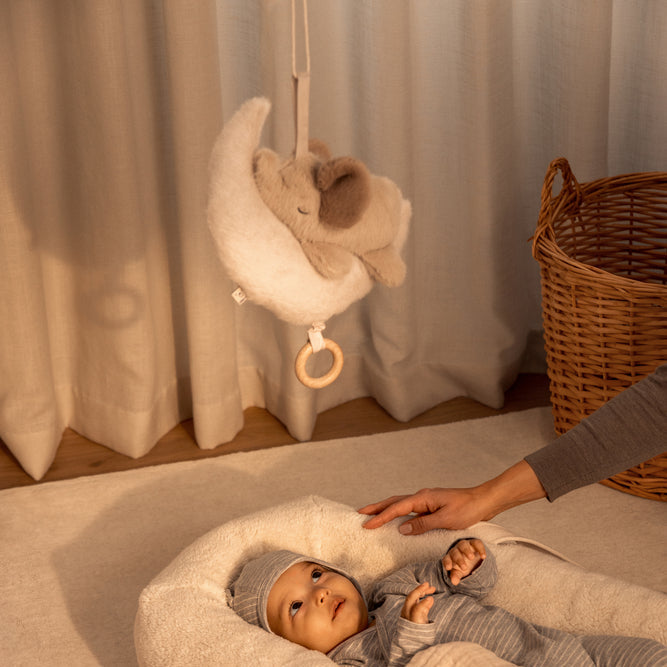 Armas muusikaline karussell, mis kujutab magavat elevanti kuul, on ideaalne lisand lapse tuppa.