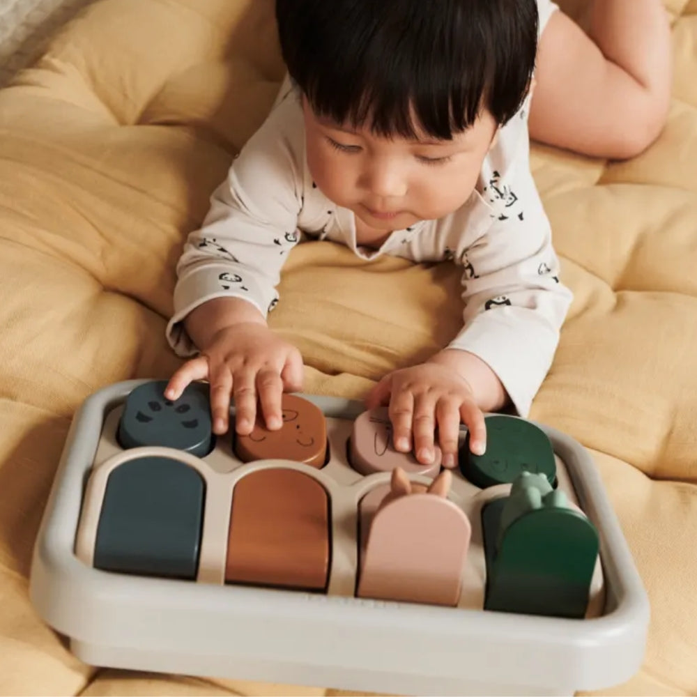 Suurtele nuppudele on väikestel kätel lihtne vajutada ning tänu kergele disainile ja mugavale käepidemele on Liewoodi toode lihtne majas ringi kanda. Mängimise ajal treenib laps täpsust ja koordinatsiooni, nähes, milline loom ilmub välja, kui objekti vajutada.