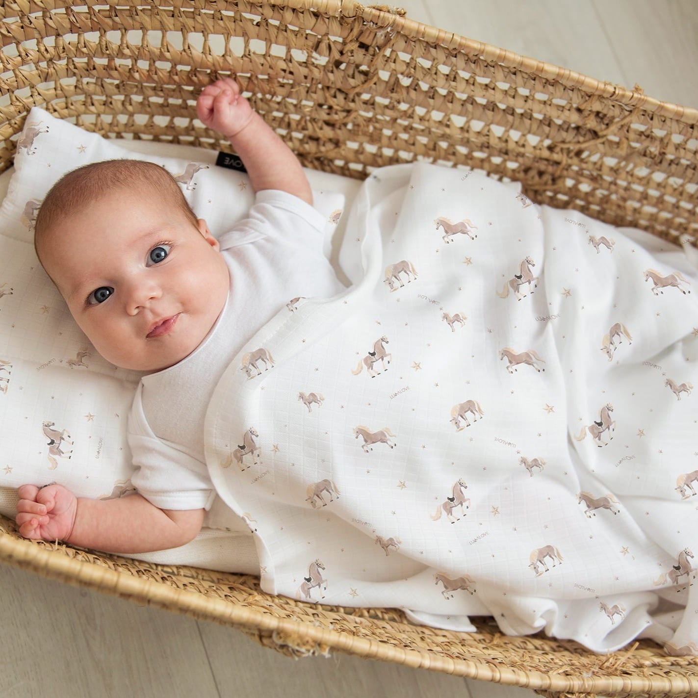 Lullalove musliinist beebipadi armsa hobuste mustriga.