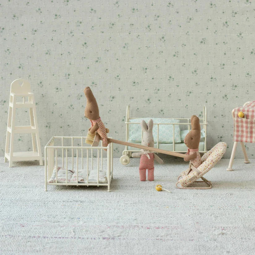 Maileg maskott-jänku triibulistes riietes on jänkuperre kuuluvate loomade seas kõige väiksem.