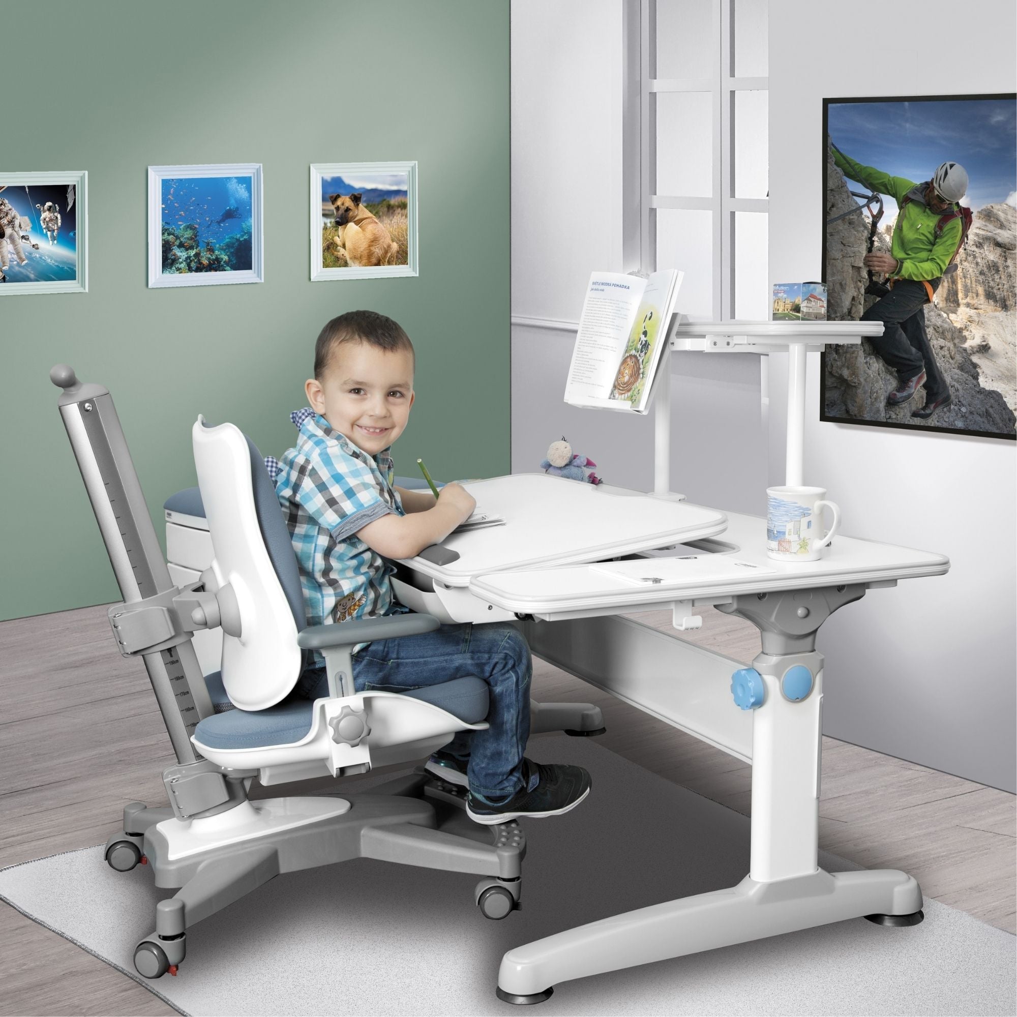 - Lisaks ergonoomilistele toolidele ja laudadele pakub Mayer laste tuppa täiendavaid sisustuselemente, nagu jalused, laua pikendused ja lamp.