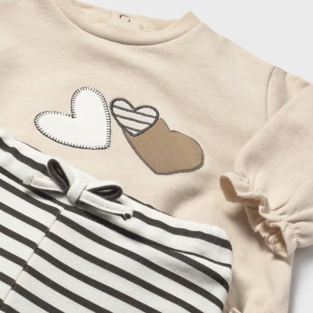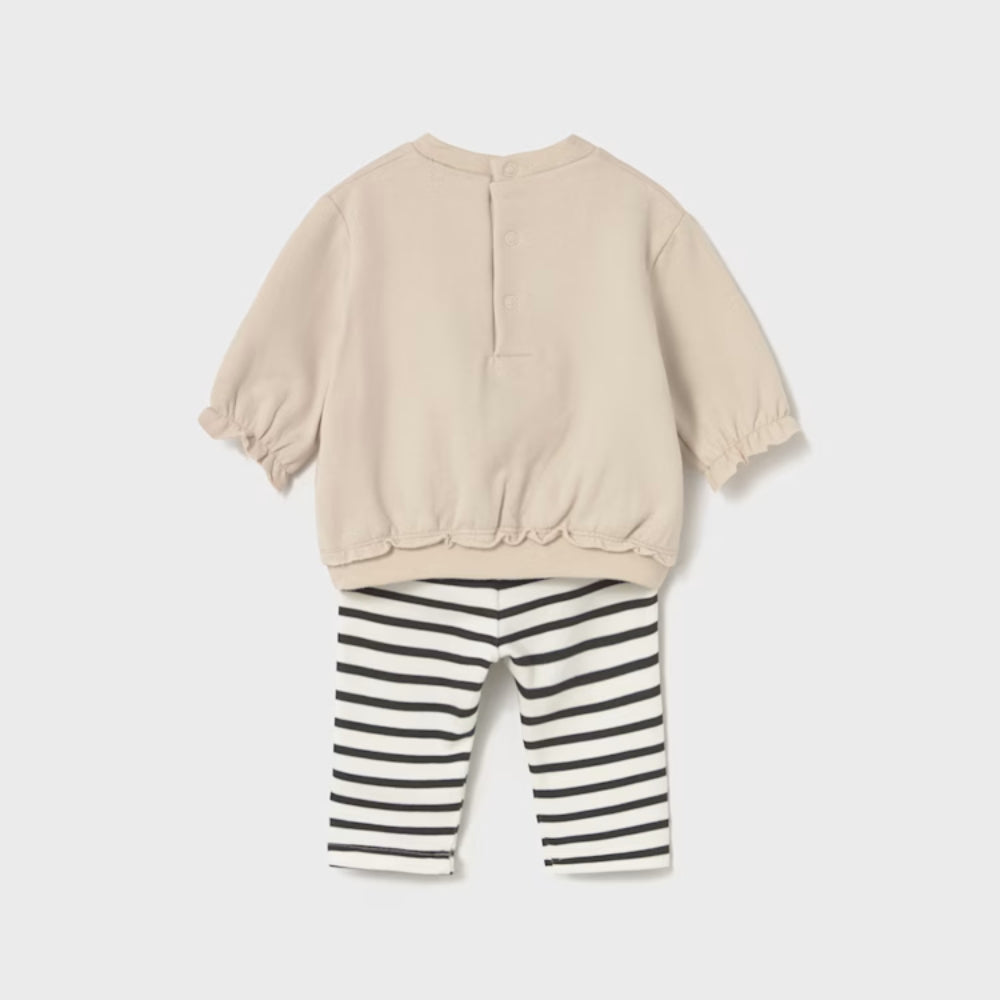 Mayoral tüdrukutele mõeldud komplekt muljetab mitte ainult oma välimusega, vaid ka funktsionaalsusega – pehme puuvill ja natuke elastaani tagavad ideaalse istuvuse ja liikumisvabaduse.