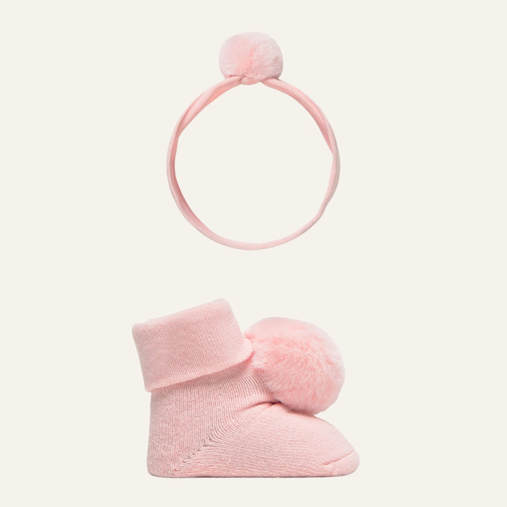 See sokkide ja peavõru komplekt vastsündinutele on ideaalne kingitus beebivarustuse komplekti jaoks ning elastne materjal aitab säilitada mugava istuvuse liikumisel.