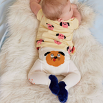 Mini Rodini kaubamärk on hoolitsenud selle eest, et kangas oleks pehme ja meeldiva puudutusega ning et mänguline koeramotiiv meeldiks nii lastele kui ka vanematele.