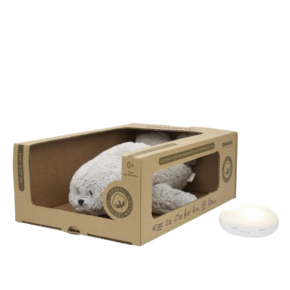 Moonie kallistatav humming seal on kaasaegne uneabivahend, mis ühendab endas funktsionaalsuse, ohutud materjalid ja armsa disaini.