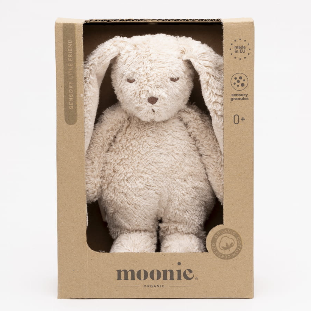 Moonie bränd on kasutanud siin ohutuid, taktiilseid materjale – orgaanilist puuvilla ja pehmet täitematerjali –, nii et mänguasi sobib ka beebide tundlikule nahale.
