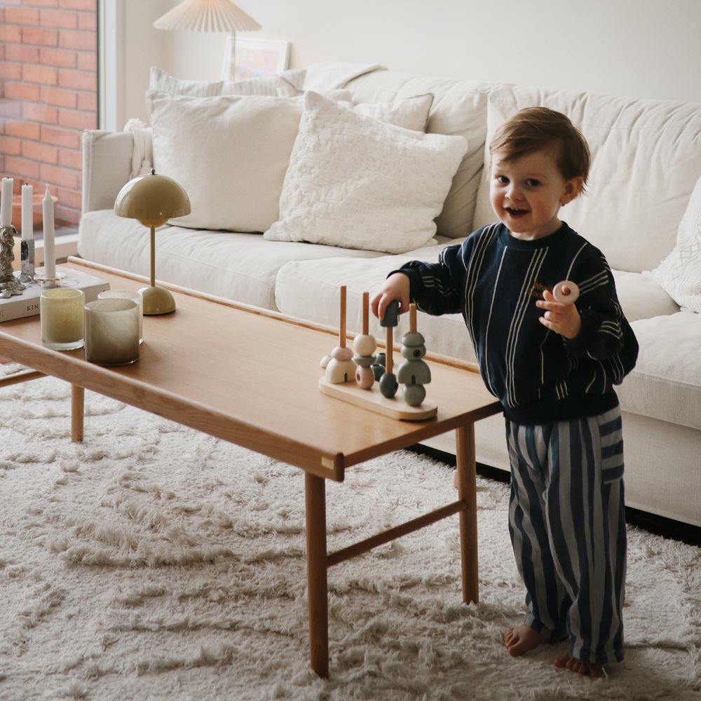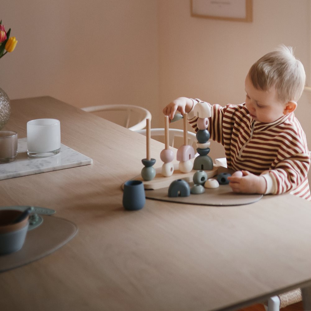 Puidust osad on disainitud nii, et need sobiksid mugavalt väikestesse kätesse ja julgustaksid last iseseisvalt mängima.