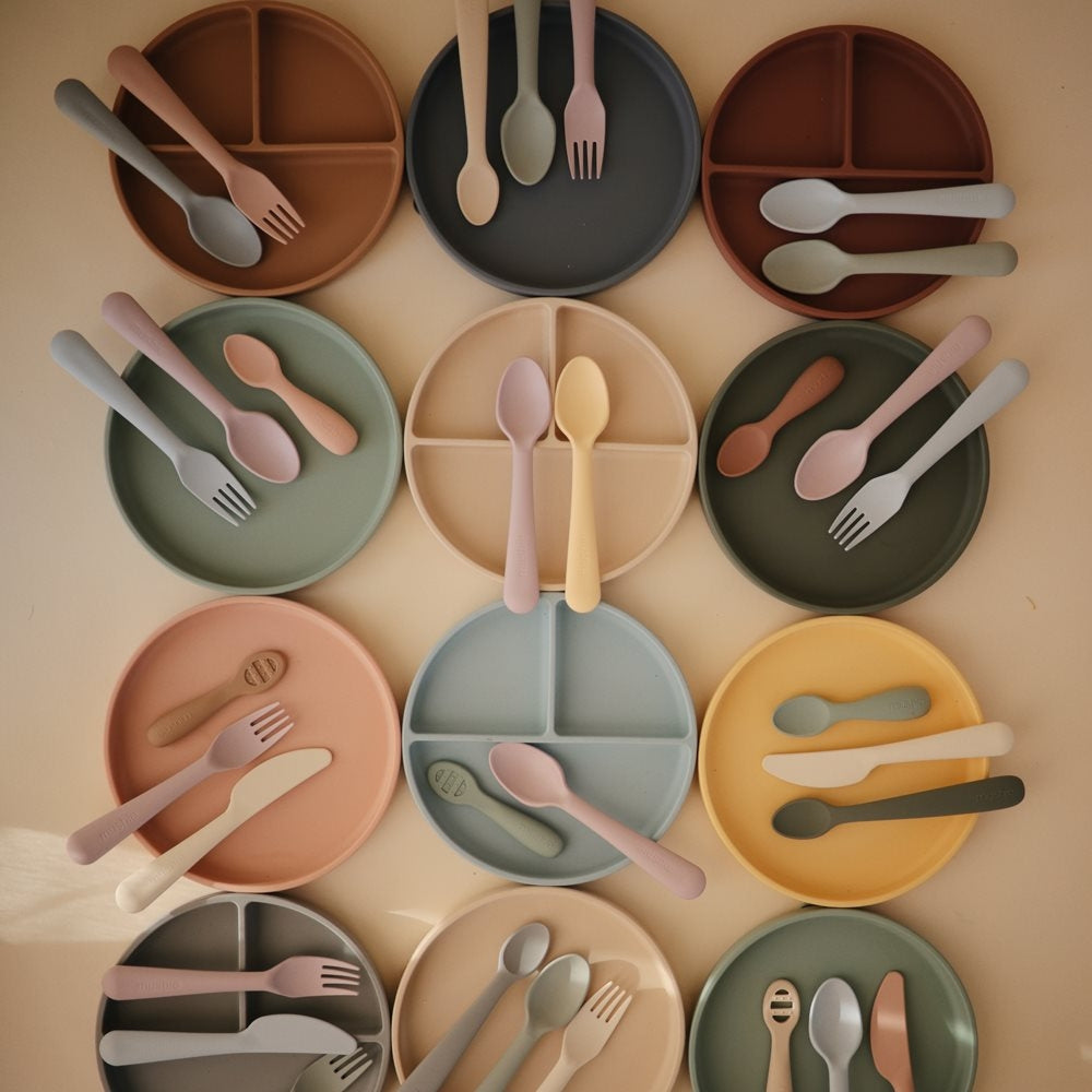 Silikoonplaat iminappadega Shifting Sand Mushie on mõeldud beebi esimesteks iseseisvateks söögikordadeks.