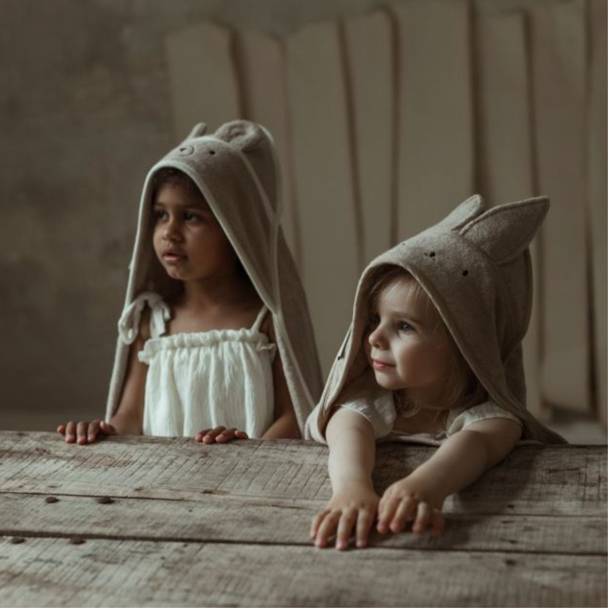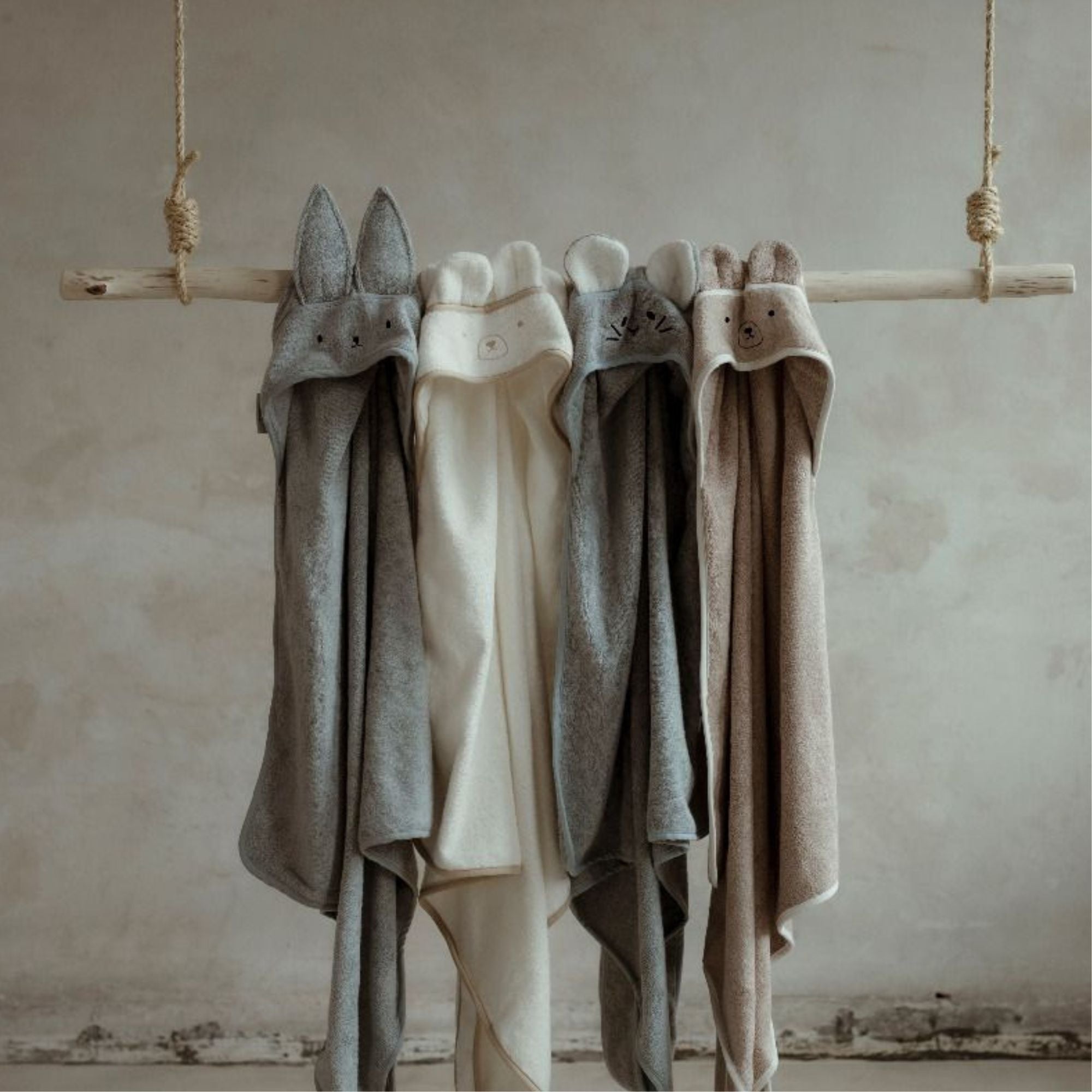 Beež rätik kapuutsiga, millel on kõrvad, silmad ja nina.