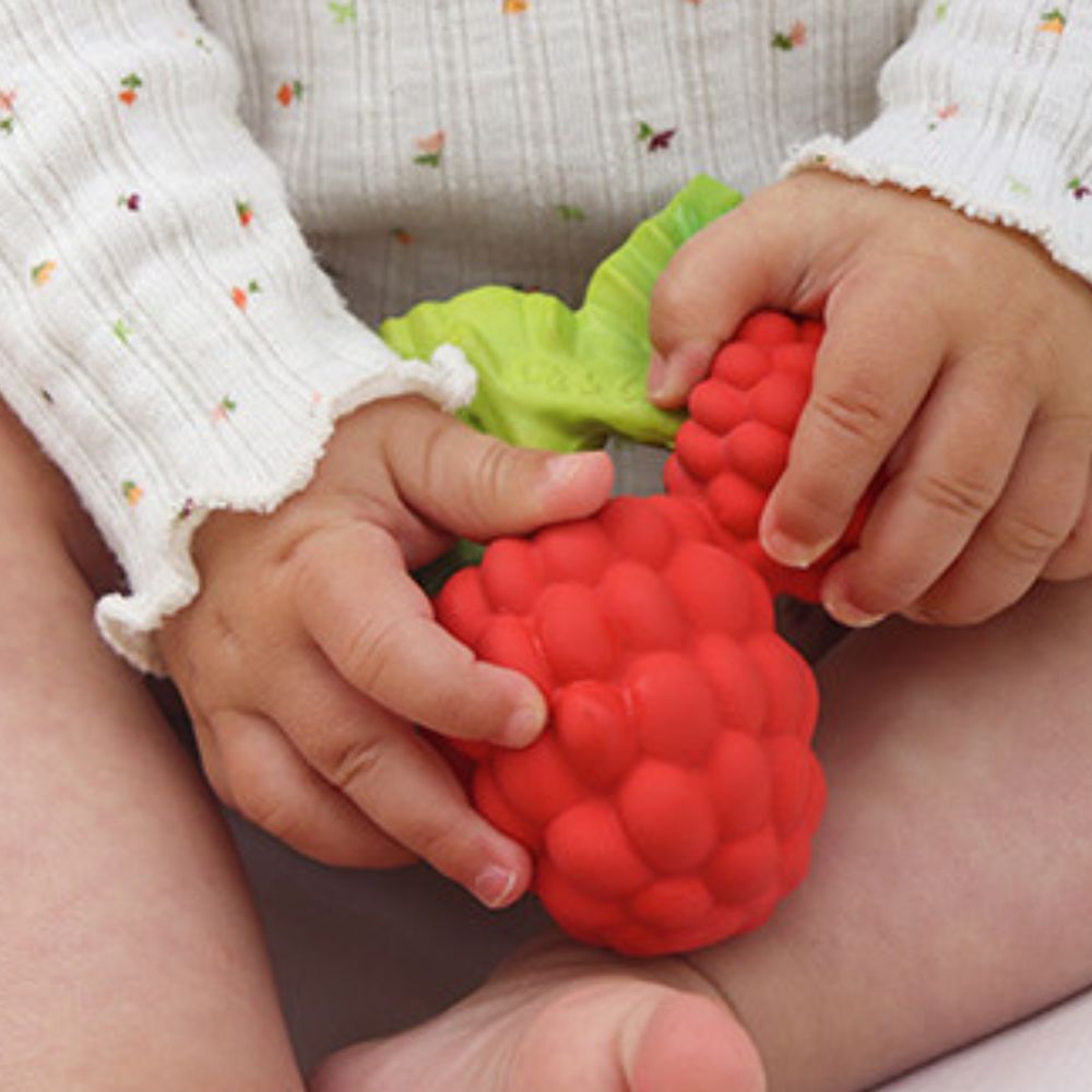 Looduslikust kummist valmistatud Valery Raspberry Baby Teether on suurepärase disainiga hammustusrõngas, mis masseerib õrnalt lapse igemeid ja toetab nende tervislikku arengut.