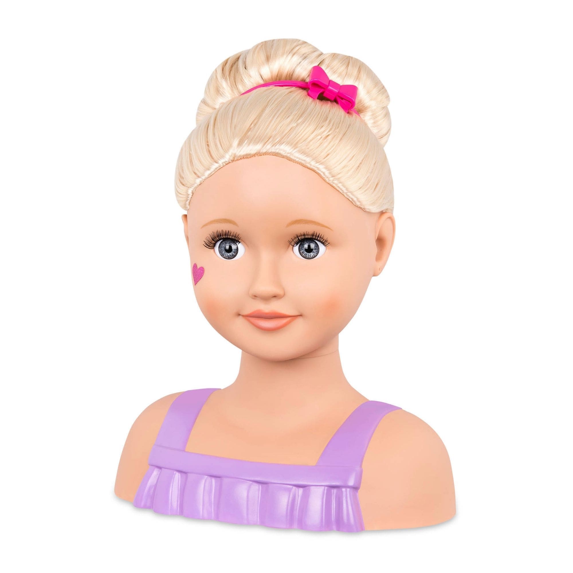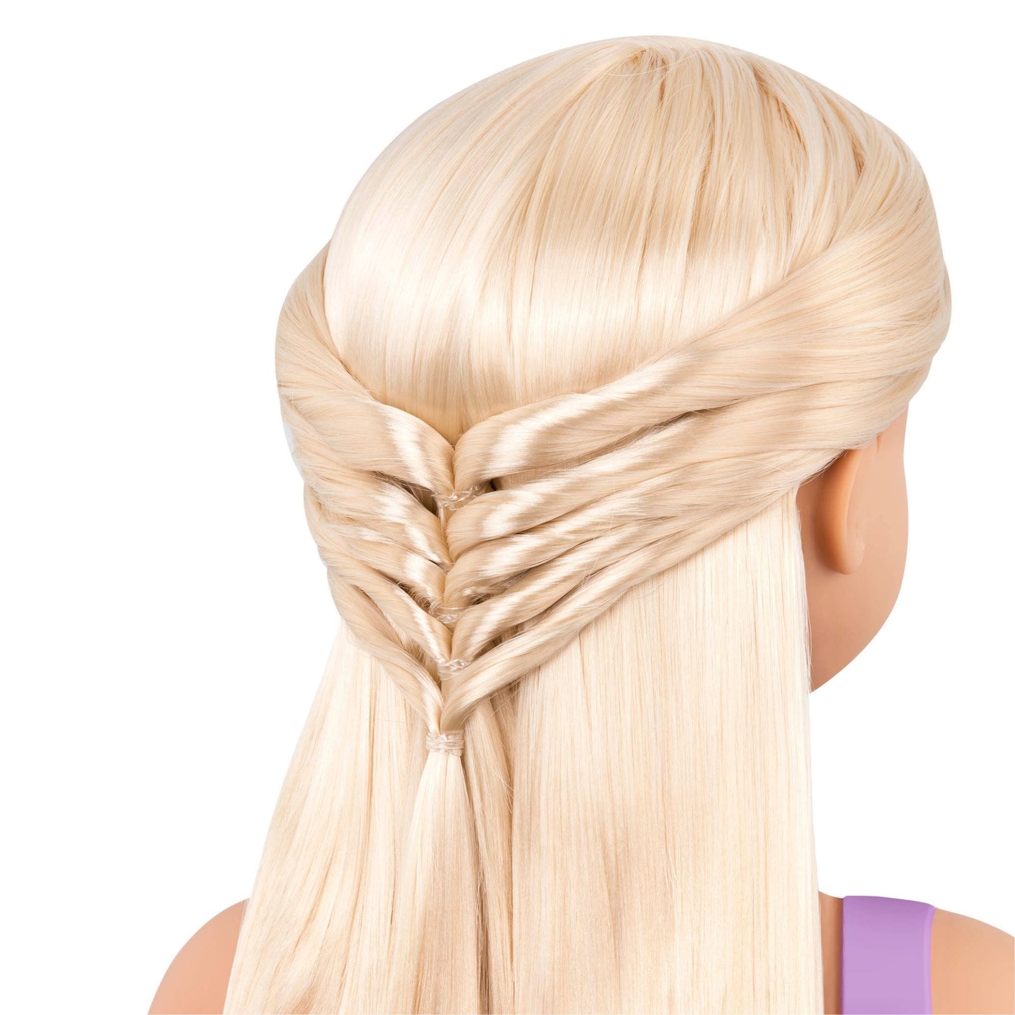 - Komplekt sisaldab: 23 cm pikkune nukupeaga, pikkade heledate blondide juuste ja hallide silmadega, hari, karp sädelevat geeli, juuksepant, 2 südamekujulist klambrit, komplekt tsirkooniumi imitatsiooni kleebiseid, leht sädelevaid kleebiseid, brošüür näidissoengutega.