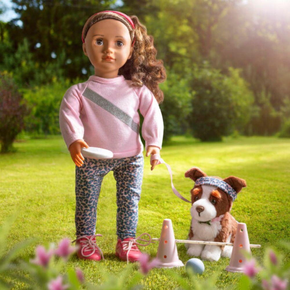 Our Generation Natalia ja Nillie hurtnukud koos koeraga rihma otsas ja treeningutarvikutega