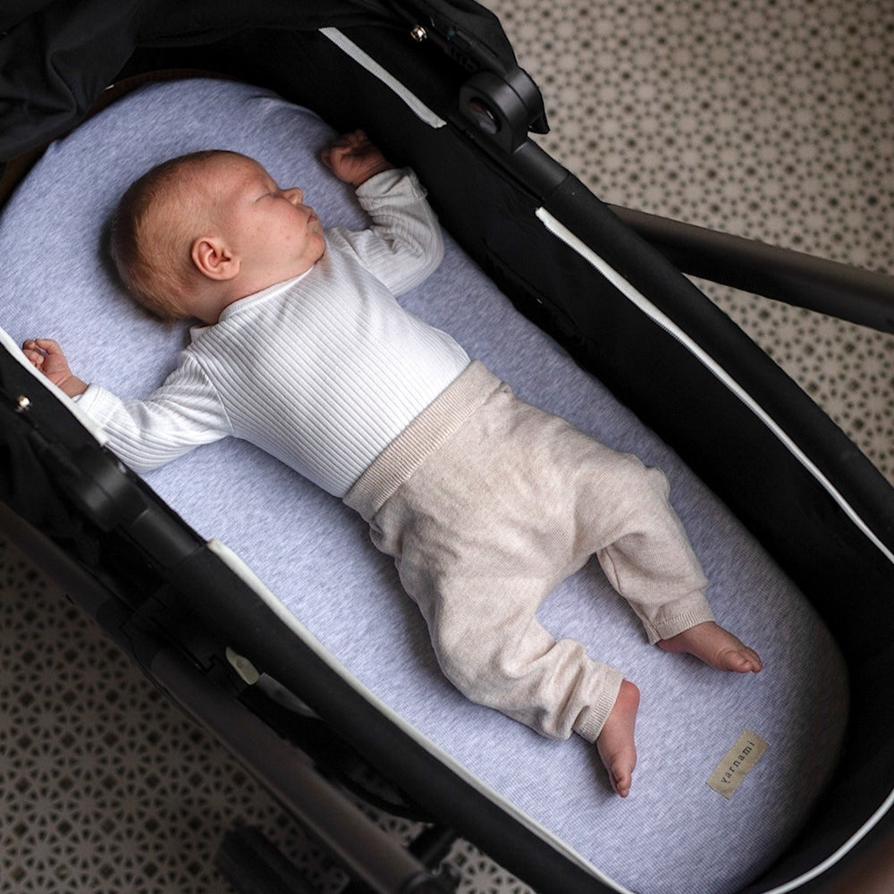 Looduslikud kiud võimaldavad nahal hingata, vältides ülekuumenemist ja ärritust. Yarnami by Poofi lapsevankri leht sobib ideaalselt 35x75 cm suurustele madratsitele (sobib 40x80 cm), seega püsib see ideaalselt paigal.