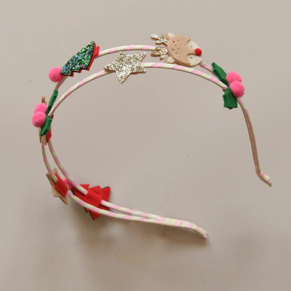 Kaheosaline juuksepand on kaunistatud armsate elementidega, nagu põhjapõder, jõulupuu, säravad tähed ja kadakas, mis teeb selle ideaalseks perekonna kokkutulekuteks, jõulufotode tegemiseks või peomängudeks.