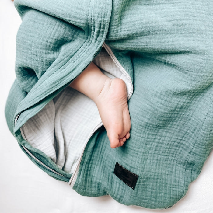 Sleepee kahepoolne musliinist magamiskott Ocean Green 0–4 kuud.
