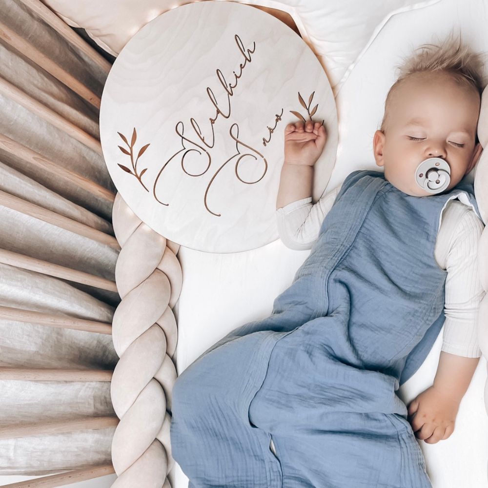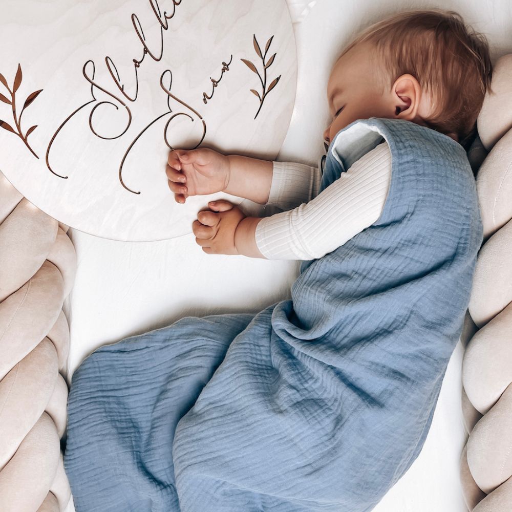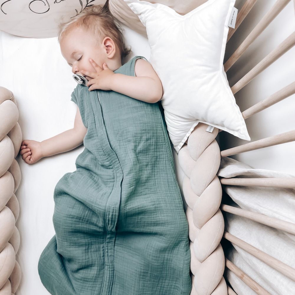 Kvaliteetsest pehmest musliinist valmistatud magamiskott on beebi nahale õrn ja tagab suurepärase õhuringluse.