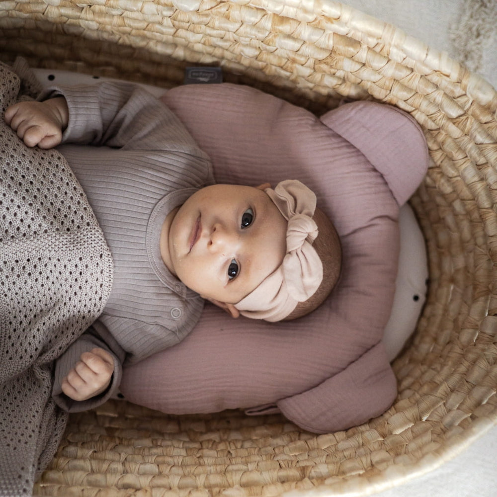 Sleepee imikupadi on valmistatud pehmest puuvillmusliinist ja on kujundatud nagu karu pea.