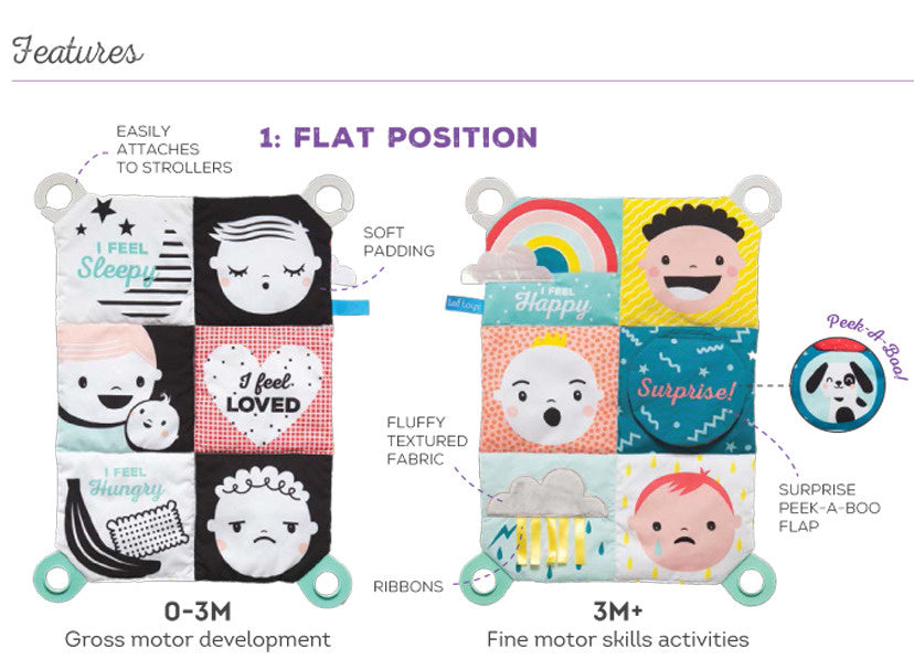 Tof Toysi kahepoolne mini-sensoorne matt beebi emotsioonidele sobib ideaalselt beebi kahe esimese arenguetapi jaoks.
