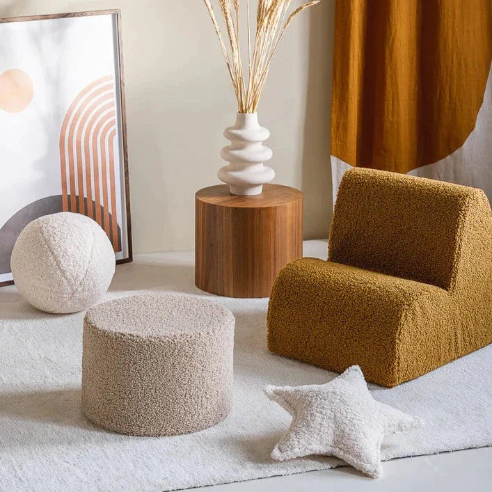 Kvaliteetsest pehmest plüüsist valmistatud beebipuff ei ole mitte ainult luksuslik, vaid pakub ka unustamatuid taktiilseid elamusi, mis teeb selle ideaalseks noortele omanikele.