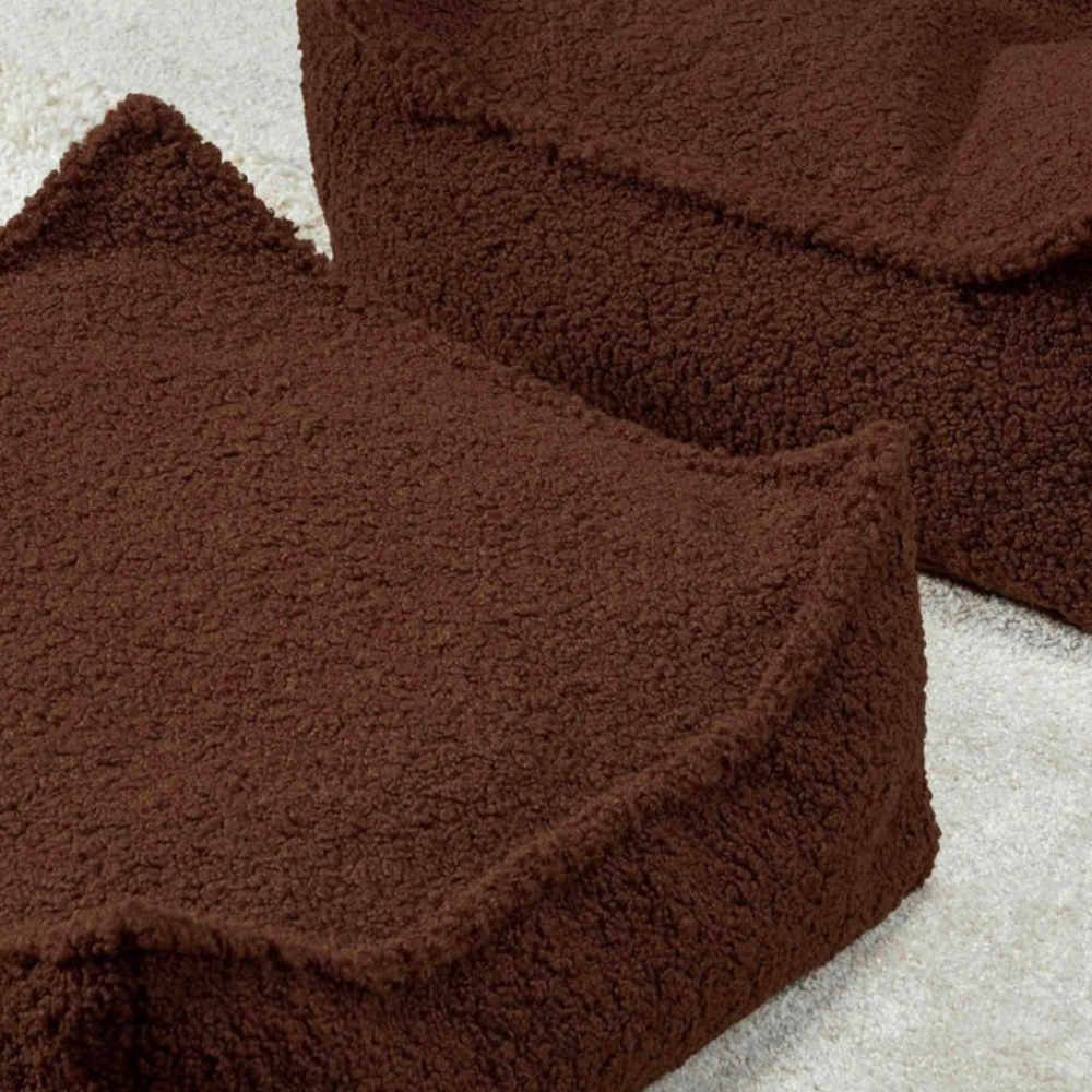 Pehme teddy-kangas on meeldiva puudutusega ja lihtne, ajatu kuju muudab istekoha nii magamistoas kui ka mängutoas hästi nähtavaks.